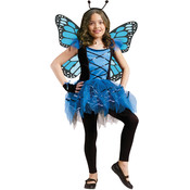 This beautiful Child Ballerina Butterfly Costume is the kind of ultra feminine costume that little girls love to dress up in. Featuring a black and blue color blocked bodice dress with black criss cross lace up detail in front this childs butterfly costume has a very full blue tutu skirt that will make your little girl want to dance and spin around and show off her colorful dress. Halloween costumes include an antenna headband black fingerless mitts decorated with blue bows and a beautiful pair of black and blue butterfly wings. With beauty style and grace this ballerina butterfly costume will transform your little one into the loveliest prima ballerina the family has ever seen! Little girls love to play dress up and put on costumes no matter what day it is so let your little one dress up like a beautiful butterfly on Halloween or any other day of the year.